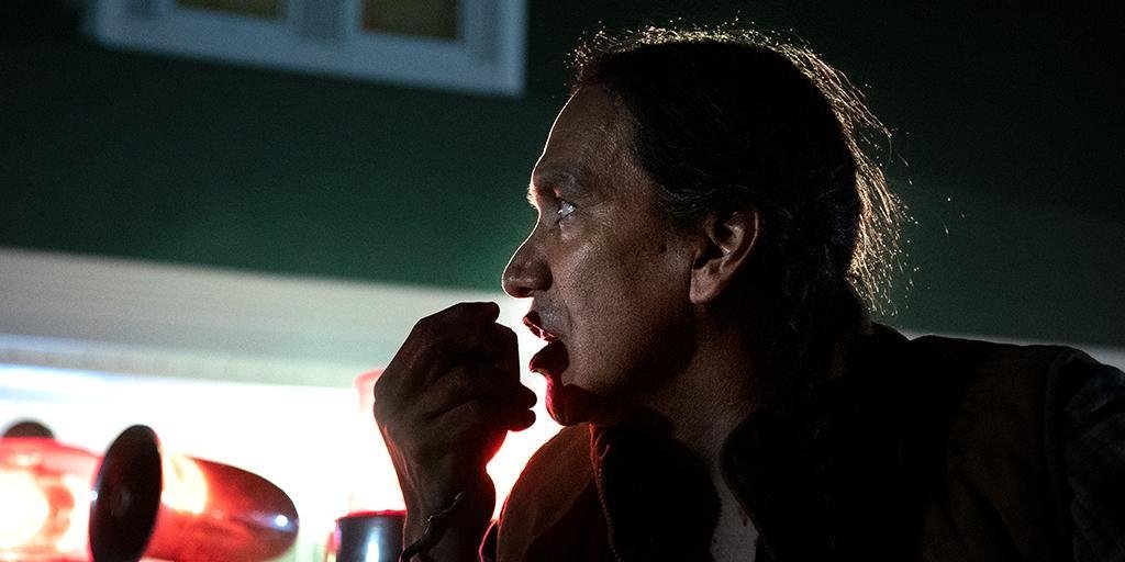 The film gradually illustrates the decline of the reserve as more mysterious and grim cases pop up on Traylor’s radar. A climactic moment toward the first half-hour mark is the segway for a six-month jump forward where Traylor, his sons and Joseph’s mother, Joss (Elle-Máijá Tailfeathers) have walled off a small village on the Mi’gmaq reserve for themselves, along with more than a hundred survivors, including Traylor’s lone fisherman father, swordsman and formerly retired deputy, Gisigu (Stonehorse Lone Goemon), and fellow indigeonous inhabitants Shooker (William Beleau) and the chainsaw-wiedling Bumper (Brandon Oakes).