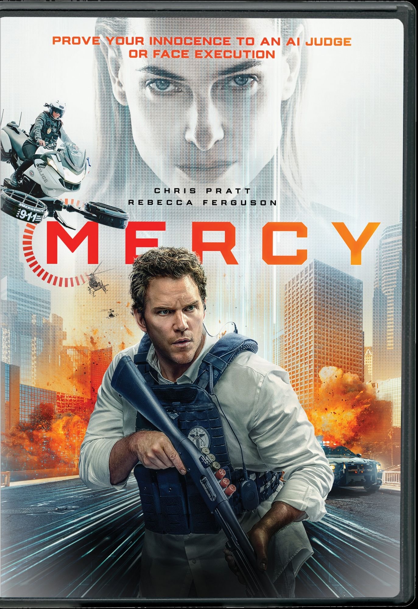 Mercy follows Detective Chris Raven (Chris Pratt), who stands accused of murdering his wife. On trial before the advanced A.I. Judge (Rebecca Ferguson) he once championed, he has just 90 minutes to convince it that he’s innocent and stave off execution.